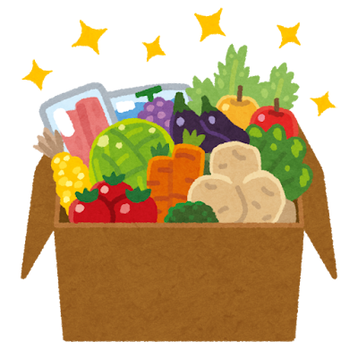 - 隔週:米、乾麺、缶詰、冷凍野菜・冷凍果物、冷凍パン・惣菜